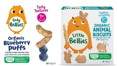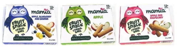 His Honour then held that Aldi’s “Mamia” baby puffs packaging infringed the copyright in the Applicants’ “Baby Bellies” blueberry, apple/cinnamon, and carrot baby puffs packaging, as shown below: