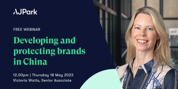 Join our free webinar on developing and protecting brands in China. In this webinar AJ Park expert Victoria Watts will discuss trade mark protection in China, some of the pitfalls businesses entering the market can experience, and how to avoid those. Register to secure your spot here.