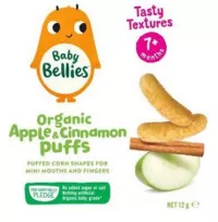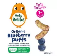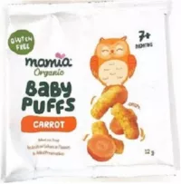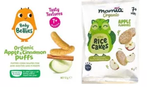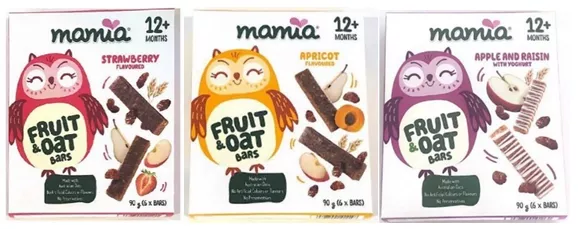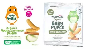 His Honour then held that Aldi’s “Mamia” baby puffs packaging infringed the copyright in the Applicants’ “Baby Bellies” blueberry, apple/cinnamon, and carrot baby puffs packaging, as shown below: